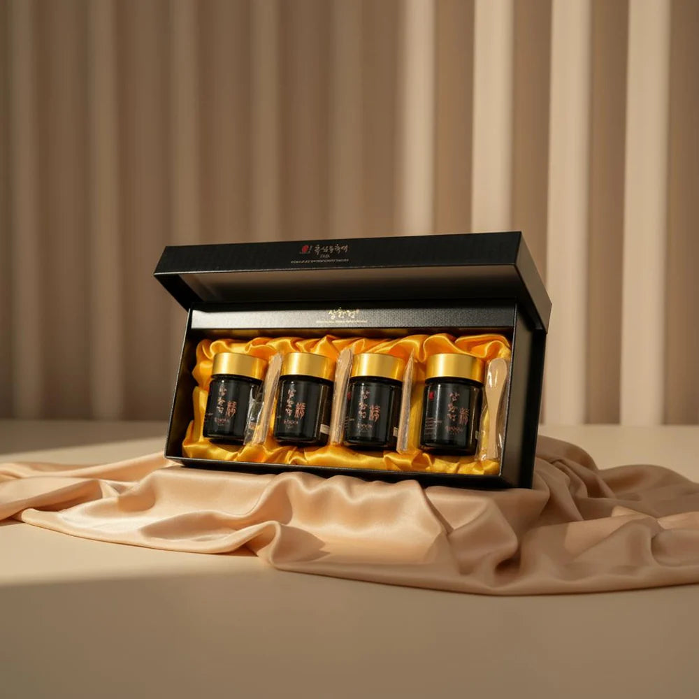 锦山黑参是拥有最高效能、安全可信的「参中之参」。此組合為錦山黑蔘的高級禮盒版本,結合切片與整根兩種形式。黑蔘以 4–6 年根高麗人蔘製成,保留參體完整形態與濃厚參香,再以純蜂蜜醃漬,呈現自然潤甜風味。無論自用或送禮,皆展現頂級韓蔘風味與典雅包裝。