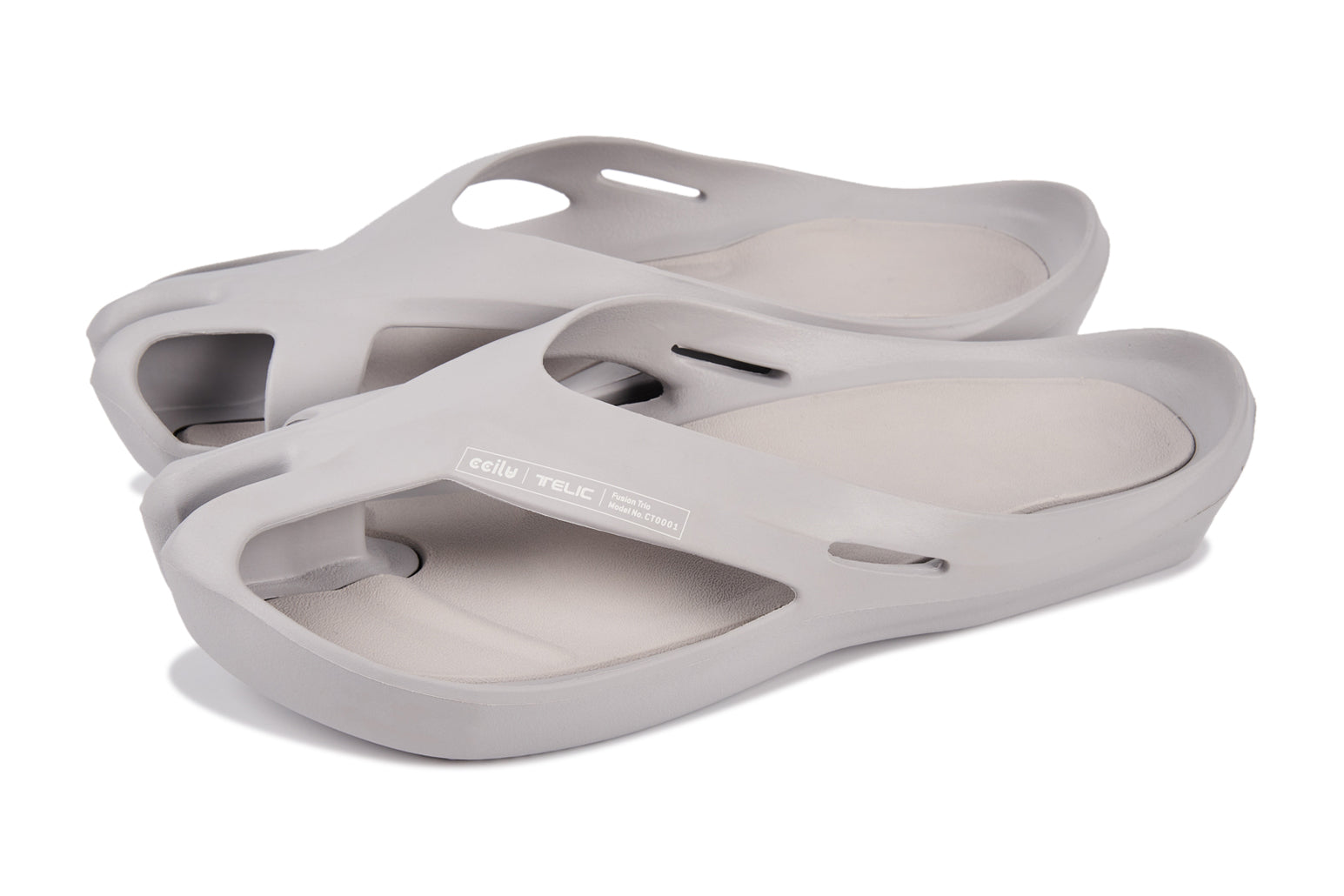 TELIC 由跑者背景的創辦人發想,結合運動修復機能,打造輕巧舒適的修復鞋履。馳綠22 製夢所團隊以台灣矽晶回收議題研發 SiliComfy® 專利鞋材,結合 TELIC 特性推出 Telic SiliComfy® 矽晶減壓鞋履。